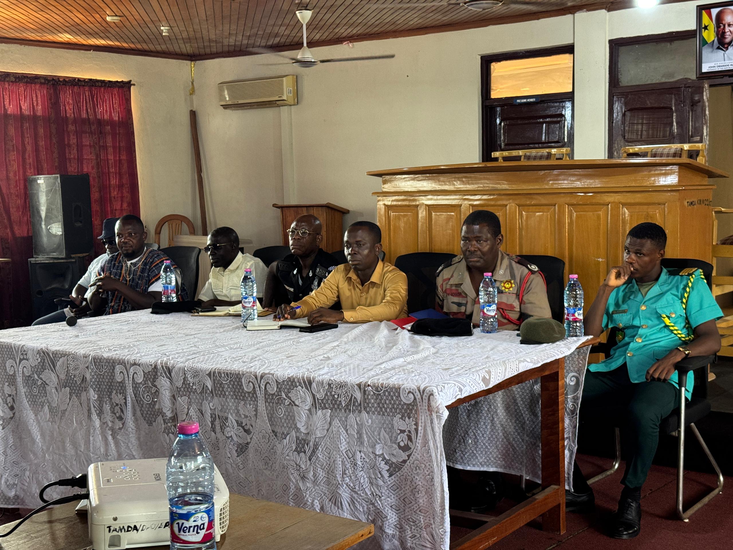 The meeting commenced with an opening prayer by Madam Alberta Obeng, followed by the introduction of key attendees, including the District Planning Officer Mr. Alfred Dadson, District Engineer Ing. Eric Nyame, Assistant District Engineer Mr. Michael Daklu, Road Safety Officer Mr. Arthur, Inspector Obed Asamoah of the Immigration Service, District Fire Commander DOIII Agogovi, Presiding Member Hon. Daniel Agbodza and District Police Commander DSP Bismark.