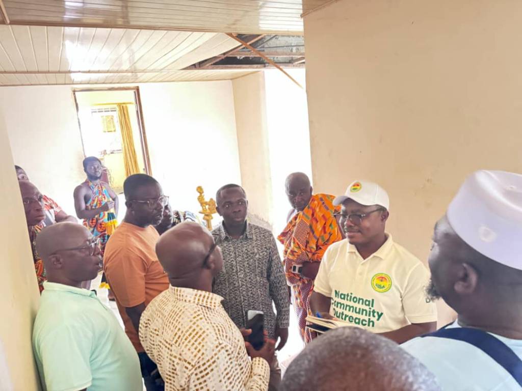 Officials from the Driver and Vehicle Licensing Authority (DVLA) in Accra visited the Twifo Ati-Morkwa District to inspect the existing offices and assess the area for the establishment of a DVLA branch. The visit saw the participation of key stakeholders including the Council of State Member Chairman Hakeem Addae, the District Chief Executive (DCE) Hon. Isaac Yawson, the District Coordinating Director (DCD) Mr. A.M.A Suhuyini, the Member of Parliament (MP) Hon. David Vondee, and Nana Kwasi Asiedu IV.